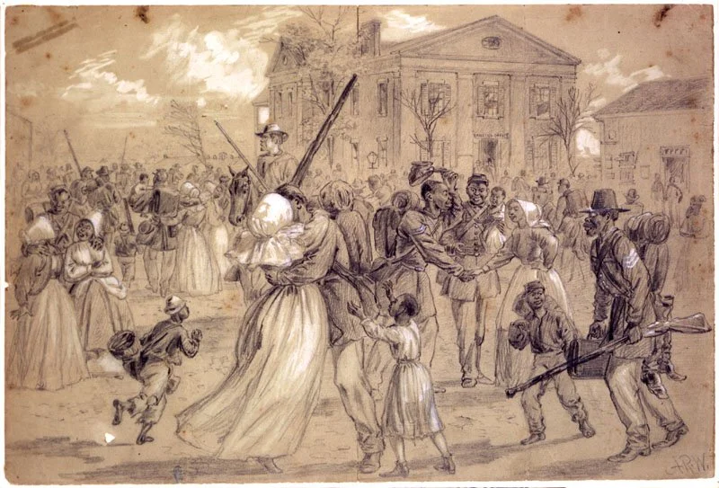 As a key tactic to decimate the Confederate war campaign, Abraham Lincoln issued the Emancipation Proclamation, and executive order, directing the Union to harbor any enslaved Black people that were able to make it into Union controlled territory. The Emancipation did not free all Enslaved peoples. The executive order only applied to States in the Confederacy. Border states like Maryland and Enslavers in Northern states were excluded from the proclamation’s reach. This was a landmark moment to repudiate the diabolical Dred Scott decision and lay the groundwork for Black people to shed their property status and begin the journey to full citizenship.